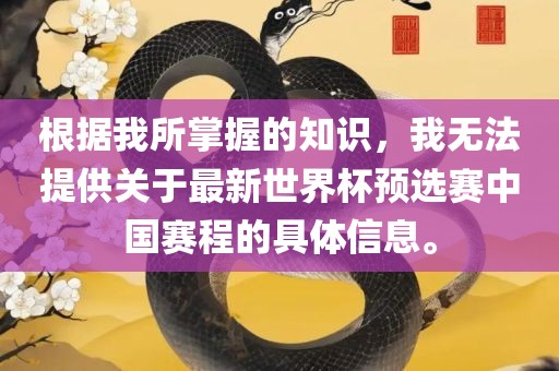 根据我所掌握的知识,我无法提供关于最新世界杯预选赛中国赛程的具体信息。