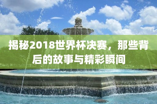 摘要:本文将带你深入了解2018年世界杯决赛背后的故事与精彩瞬间。从球员们的备战历程,到比赛过程中的紧张刺激,本文将揭示那些鲜为人知的故事和令人难忘的时刻。跟随本文,一起回顾那场激动人心的决赛,感受足球的魅力。