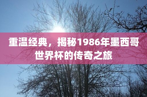 时光荏苒,岁月如梭,但那些关于足球的美好记忆,总能在人们心中激起无尽的热情,而提及足球历史上的经典时刻,不得不提及的就是那激情四溢的1986年墨西哥世界杯,让我们一起重温这场足球盛宴,探寻其中的传奇故事。