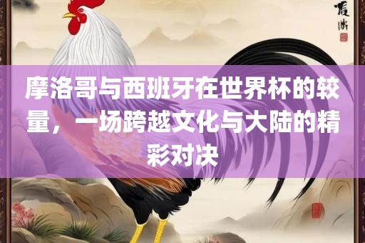 摩洛哥与西班牙在世界杯上的对决是一场充满悬念和激情的比赛,这场比赛不仅是足球技术的较量,也是文化和大陆的碰撞,通过这场比赛,我们可以更好地了解足球运动的精神和文化内涵,也可以增进不同文化之间的了解和友谊,让我们共同期待这场比赛的精彩瞬间吧!