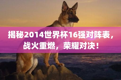 摘要:2014世界杯战火重燃,16强荣耀对决的对阵表揭晓。各支球队经过激烈角逐,最终晋级16强,展开荣誉之战。球迷们翘首以待,期待这场足球盛事的精彩对决和激情瞬间。